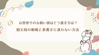 ベビーおでかけ・あそび お宮参りのお祝い袋の書き方は?祖父母の相場と表書きに迷わない方法 「お宮参りのお祝い、祖父母としてどう準備すればいいの?」——初孫や久しぶりの赤ちゃんのお祝いに、張り切りたい気持ちと同時に、「のし袋の書き方や金額の相場がわからない…」と迷ってしまう方も多いのではないでしょうか。実は、お宮参りのお祝い袋には... 2025.09.26 ベビーおでかけ・あそび